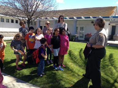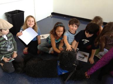 Venus, the therapy dog and Gayle come to visit our service learning club